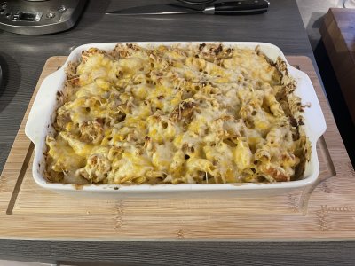 Schmackhafter Nudelauflauf mit Thunfisch überbacken mit Käse.